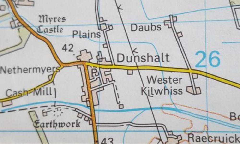 The first mention of what is now Dunshalt is in a 1775 and subsequent 1805 map as Dunshill. There is however no mention of it in the detailed 1803 ‘History of Fife and Kinross’. The Loch of Rossie having been drained in 1806 and the new road to Falkland and Eden Bridge having been completed in 1920, the village quickly grew and appears in the 1828 map as Dunshelt, appearing on subsequent Ordnance Survey maps until 1989 as Dunshelt. So only for the last 30 years has it been Dunshalt!
