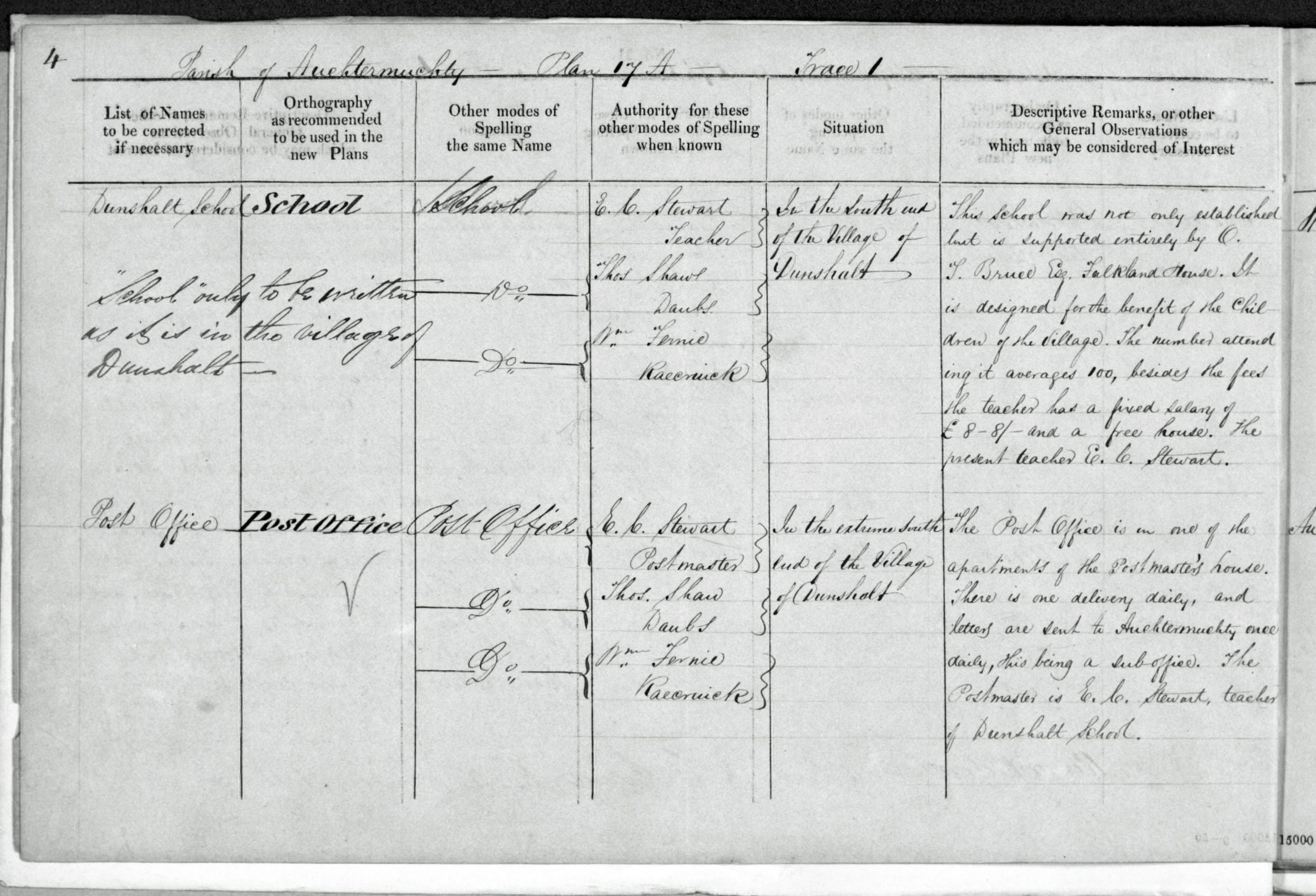 Paradoxically we see at this time the beginnings of what Dunshalt is today. The Valuation Roll in 1855 identifies 160 individual premises and an 1861 Census population of 567. By 1881 the population had already fallen to 414, despite the Valuation Roll of 1895 now showing no less than 230 individual premises.